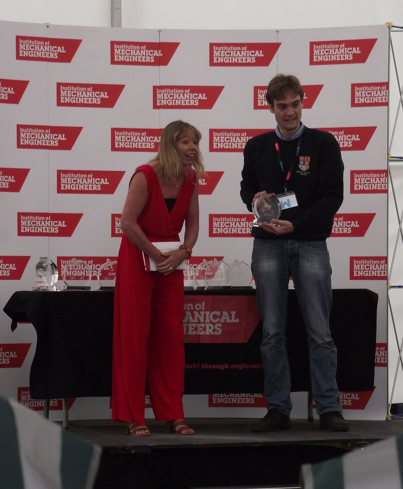 The Loughborough team achieved 2nd place, but won most of the trophies, including one presented by the IMechE CEO, Dr Alice Bunn.